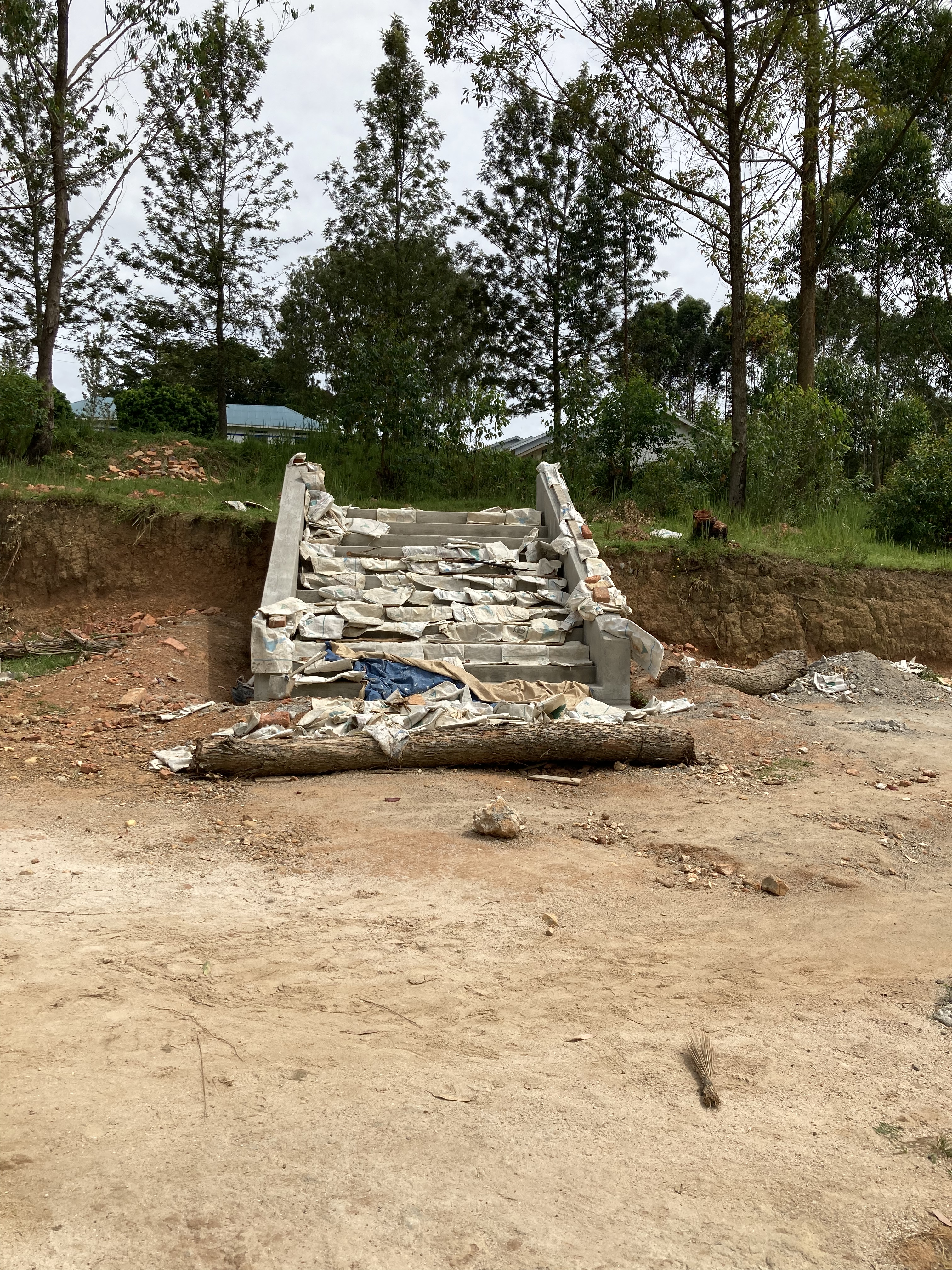 As much as we would have loved us to make further progress on the music department it wasn’t possible. I was reminded of some forgotten areas (out of sight out of mind) where work had begun but then focus shifted to the library project in 2016. All this time the girls in the Seminary (primary section) have been living in the dust of an unfinished dormitory. So, we returned to that project to improve their living conditions. We plastered the walls inside and out, finished the veranda and floors. We also embarked on building them stairs to their main compound, so hopefully they will soon no longer have to use the goat path they made for themselves, winding up the side of the hill.